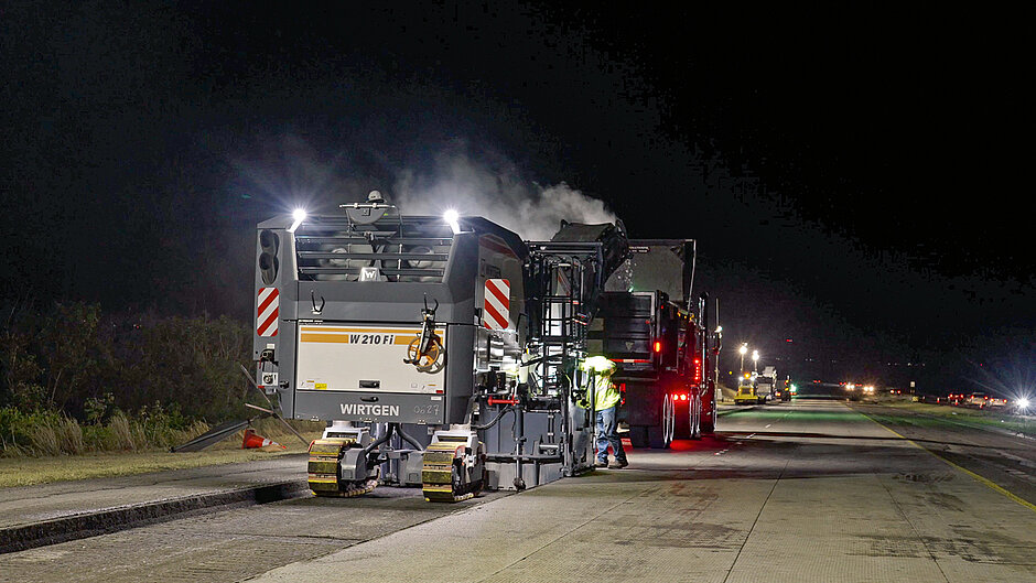 Für die Sanierung des Highways wurden insgesamt 125 Arbeitstage veranschlagt. Dabei sollten die Deckschicht und die Tragschicht in zwei Arbeitsschritten ursprünglich mit einem Bagger abgetragen werden. Durch die Investition in die neuen Maschinen war es möglich, beide Schichten mit einer Gesamtstärke von 20 cm in einem Arbeitsgang abzufräsen und das abgetragene Material wieder zu verwenden.