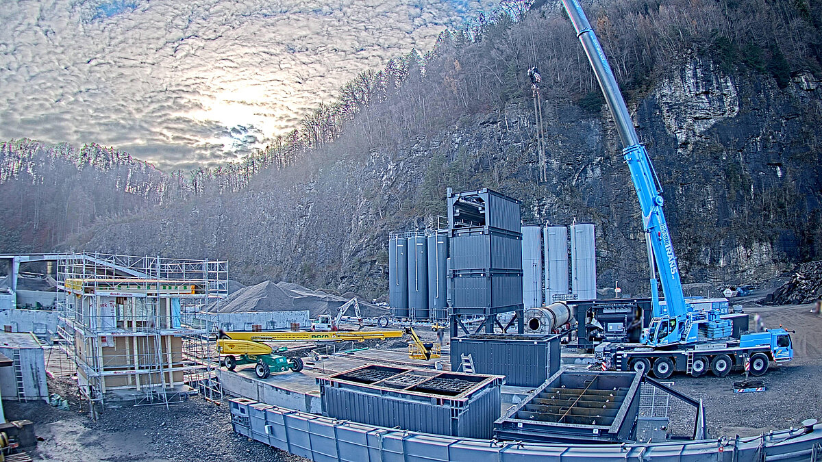 Neben dem bestehenden Kaltrecycling-System wurde die Anlage für die Heißgaserzeugertechnologie mit Recyclingraten bis zu 100 Prozent vorgerüstet. Die Technologie kann den Anteil von recycelten Materialien im Endprodukt weiter erhöhen und gleichzeitig die Emissionen, die bei der Herstellung von Mischgütern entstehen, senken.