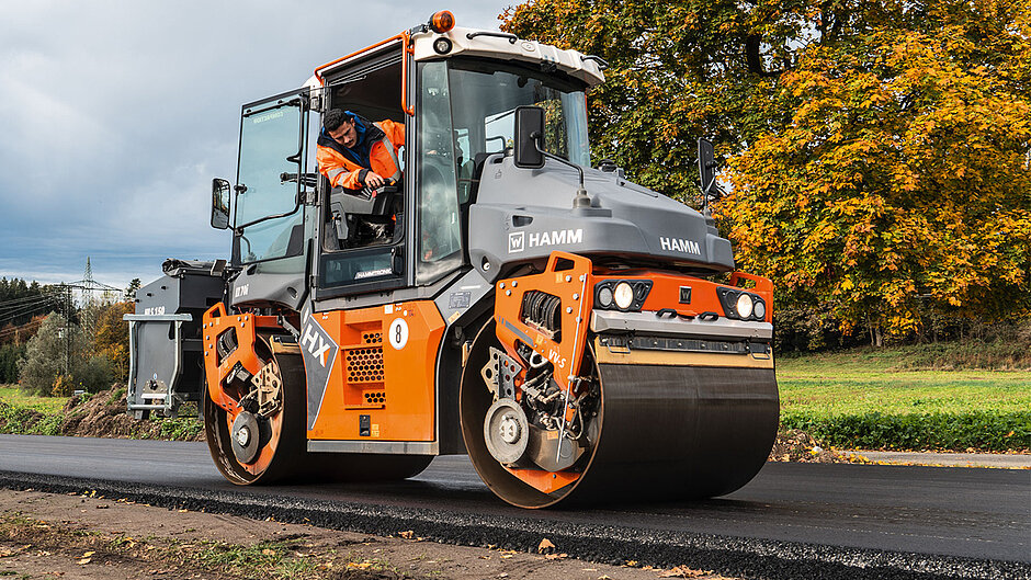Eine weitere Lösung zum Erreichen einer hohen Prozesssicherheit ist der Verdichtungsassistent Smart Compact, der die Verdichtungsenergie und -modi in beiden Bandagen bei Tandemwalzen der Serie HX kontinuierlich unter Berücksichtigung des Abkühlverhaltens des Asphalts und der aktuellen Steifigkeitswerte regelt. Smart Compact entscheidet dann für den Bediener, ob statisch, mit Vibration oder Oszillation verdichtet wird und wählt die erforderliche Verdichtungsenergie aus. Als Folge davon werden Überverdichtung effektiv unterbunden, Oberflächenschäden vermieden und Überfahrten reduziert. Smart Compact erhöht damit die Effizienz bei der Verdichtung und nutzt die zur Verfügung stehende Zeit optimal aus, was einen großen Mehrwert im Zusammenhang mit temperaturabgesenkten Asphalten darstellt.