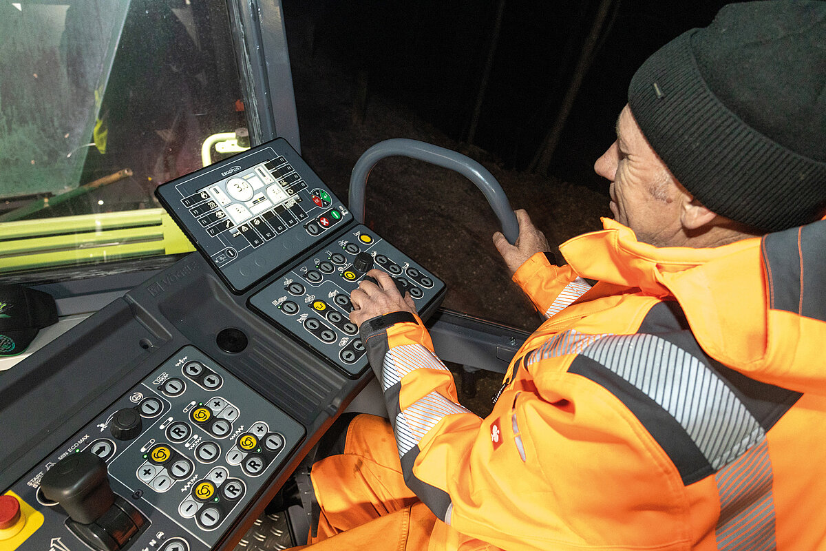 Praktisch war auch die Funktion Paver Access Control (PAC): Damit konnte das Einbauteam den Super 1800-5 X vom Boden aus in Betrieb nehmen und die Beleuchtung noch vor dem Betreten der Bedienplattform aktivieren. Über die an der Einbaubohle platzierte Bedieneinheit starteten die Bediener per Tastendruck alle initialen Schritte wie das Einschalten der Beleuchtung, das Starten des Dieselmotors, das Booten der Maschinensteuerung, das Aufrichten und Verriegeln des Dachs sowie das Absenken der Einbaubohle. Nach Arbeitsende brachten sie den Straßenfertiger auf dieselbe Weise in Transportstellung.