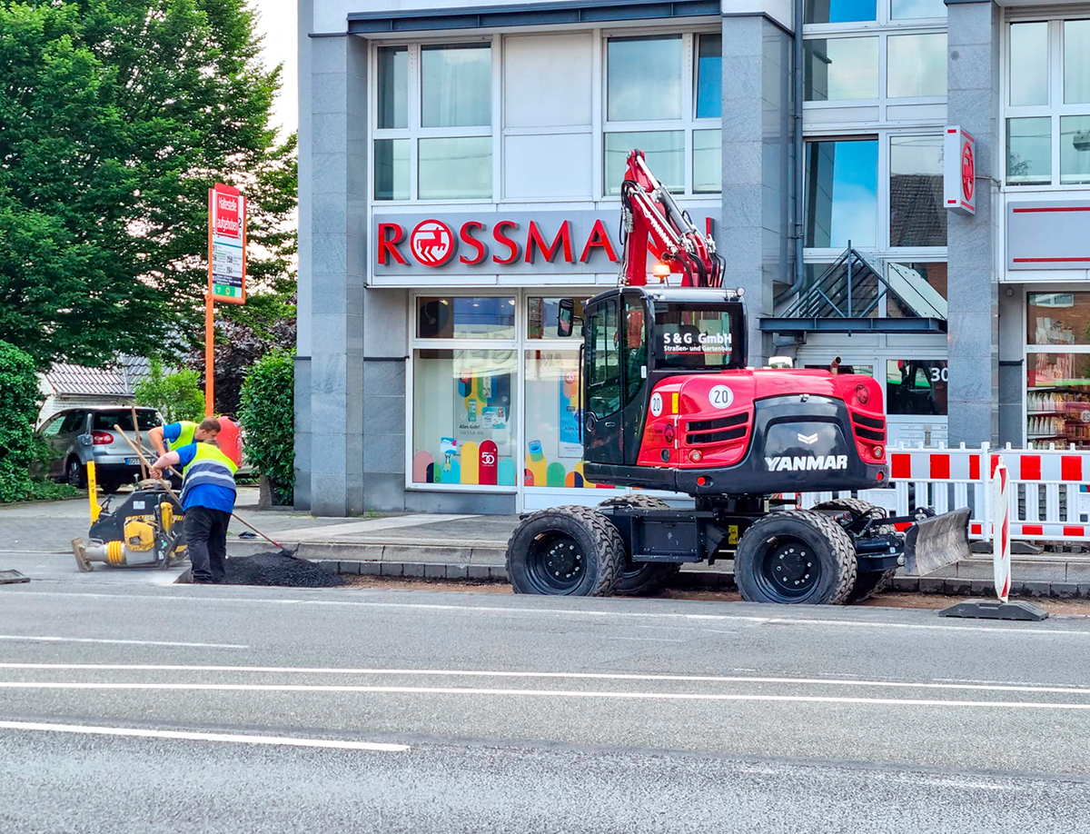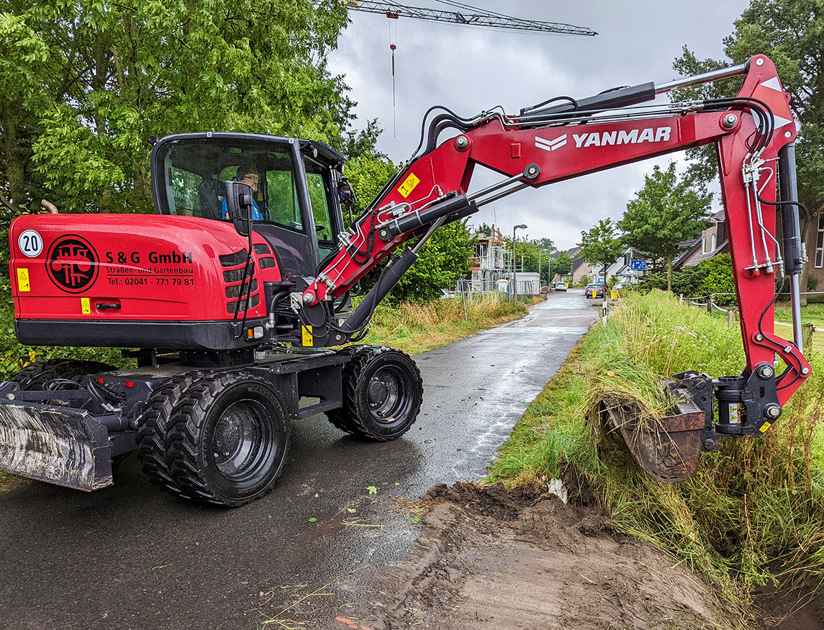 Die S&G GmbH (S&G) aus Bottrop ist Experte für Straßen- und Gartenbau. Das Leistungsportfolio umfasst unter anderem Asphalt- und Tiefbauarbeiten, die Straßeninstandhaltung, den Bau von Böschungsbefestigungen und Entwässerungsanlagen sowie die Grünflächenpflege. Aufgrund von Qualitäts- und Leistungsparametern entschied sich Geschäftsführer Ulrich Berner für seinen Maschinenpark für Yanmar-Maschinen – diese sind flexibel einsetzbar und werden den vielfältigen Anforderungen des Unternehmens problemlos gerecht. Kürzlich erweiterte der Unternehmer seine Flotte und erwarb bei Yanmar-Händler Taubitz Baumaschinen (Taubitz) einen neuen B75W; dieser ist im neuen Yanmar-Farbton Premium Red lackiert.