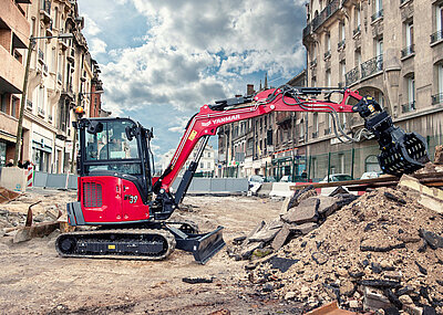 Der Yanmar ViO33-6 Minibagger ist ein Nullheckbagger, der eine Grabtiefe von 2820 bis 3070 mm erreicht und aufgrund seines kleinen Wenderadius maximale Betriebssicherheit und Komfort in verschiedenen Einsatzbereichen bietet. „Am ViO33-6 schätzen wir besonders seine Benutzer- und Wartungsfreundlichkeit, die Liebe zum Detail sowie den Motor, der neben seiner extremen Zuverlässigkeit einen geringen Kraftstoffverbrauch und geringe Schadstoffemissionen sicherstellt. Das VIPPS-Flusssummations-Hydrauliksystem ist ein weiteres 'Aushängeschild' dieses Modells und gewährleistet eine sanfte und gleichmäßige Leistung.“