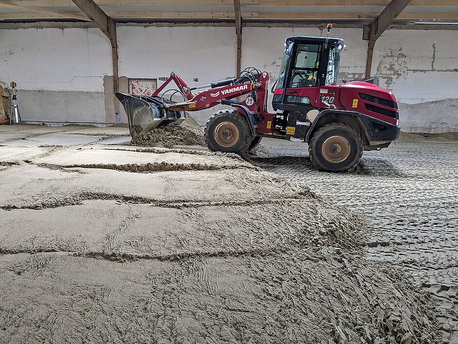 Die Firma Müller und Töchter freut sich über ihren neuen Yanmar-Radlader. Diesen setzt die seit vielen Jahrzehnten in den Bereichen Sandgewinnung, Güter-Transporte und Erdbewegung erfolgreiche Firma im Reitplatzbau ein.