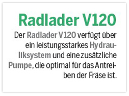 Die Vorzüge des V120 überzeugen auf ganzer Linie: Der Radlader verfügt über ein leistungsstarkes Hydrauliksystem und eine zusätzliche Pumpe, die optimal für das Antreiben der Fräse ist. Seine schwankende Hinterachse hält auf unebenem Gelände alle vier Räder konstant auf dem Boden, hinzu kommt eine äußerst manövrierfähige Knicklenkung. Mit allen diesen Charakteristika ist die Maschine optimal für den Reitplatzbau geeignet. Der Bau von Außenreitplätzen erfordert die Einbringung von drei Materialschichten: Als Grundlage dient die Tragschicht, diese besteht aus groben Materialien wie Schotter, darauf folgt die Trennschicht aus Brechsand und abschließend die sichtbare Tretschicht aus Reitsand. Der leistungsstarke und vielseitige V120 ermöglicht einen unkomplizierten und effizienten Materialtransport und Verbau.