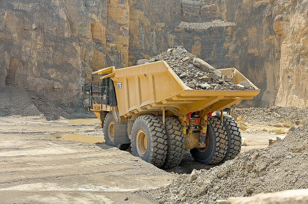 Umfassend beraten: »Für uns war das eine tolle Gelegenheit, uns als kompetenten Partner vorzustellen und dem Kunden alles aus einer Hand zu bieten«, erläutert Christian Englert. So hat der Verkäufer der Zeppelin-Niederlassung Erlangen Matthias Sowada von der Zeppelin-Einsatz-und Projektberatung mit ins Boot genommen, um die ideale Maschine für den Steinbruch zu finden sowie die Prozesse und Fahrwege zu verbessern. Die Schotterwerke Hochrein bauen in Oberthulba Muschelkalk ab und produzieren daraus Mineralgemische sowie Zuschlagstoffe für die Beton- und Asphaltindustrie. Die Wahl fiel auf einen Cat-Muldenkipper »775«, der mit 68 t Nutzlast und 42,2 m3 Muldenvolumen rund 25 Prozent mehr Kapazität als die zuvor eingesetzte Maschine besitzt.