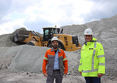 Umfassend beraten: »Für uns war das eine tolle Gelegenheit, uns als kompetenten Partner vorzustellen und dem Kunden alles aus einer Hand zu bieten«, erläutert Christian Englert. So hat der Verkäufer der Zeppelin-Niederlassung Erlangen Matthias Sowada von der Zeppelin-Einsatz-und Projektberatung mit ins Boot genommen, um die ideale Maschine für den Steinbruch zu finden sowie die Prozesse und Fahrwege zu verbessern. Die Schotterwerke Hochrein bauen in Oberthulba Muschelkalk ab und produzieren daraus Mineralgemische sowie Zuschlagstoffe für die Beton- und Asphaltindustrie. Die Wahl fiel auf einen Cat-Muldenkipper »775«, der mit 68 t Nutzlast und 42,2 m3 Muldenvolumen rund 25 Prozent mehr Kapazität als die zuvor eingesetzte Maschine besitzt.