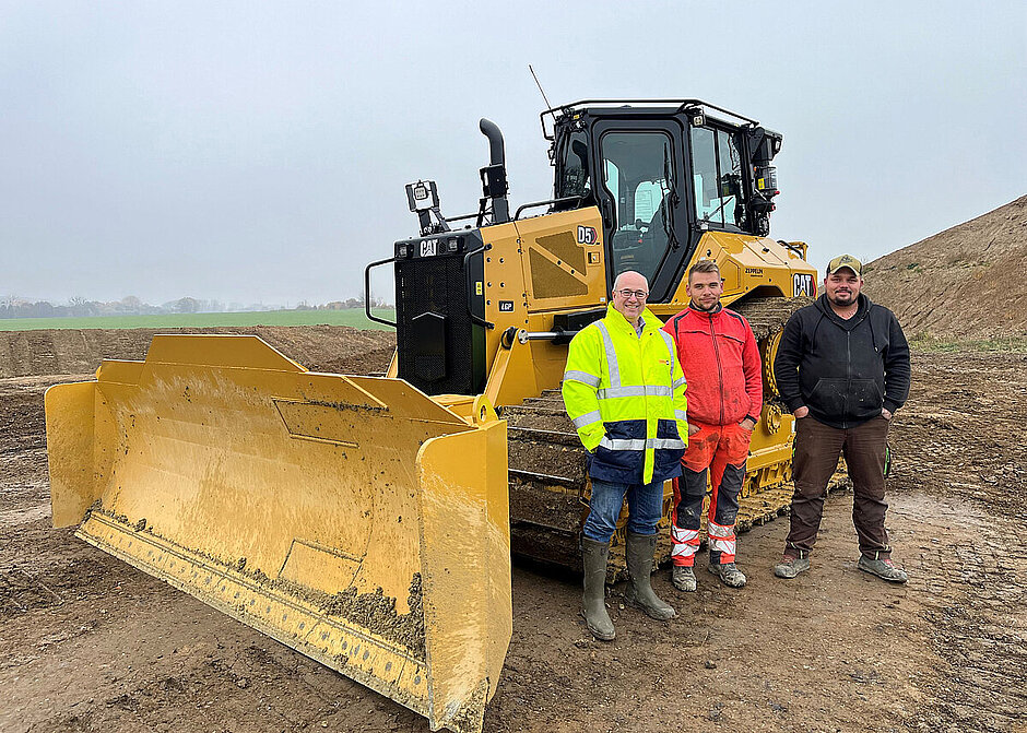 Passend zu seinen Einsatzorten auf sandigen Böden und weichen Untergründen wie matschigem Lehm ist der Cat Dozer mit einem LGP-Laufwerk ausgestattet. Als großen Pluspunkt haben Markus Titze und seine Kollegen das Delta-Laufwerk identifiziert. Da der Dozer auch auf der Deponie zum Schieben von Sand und Kies eingesetzt wird, schätzen sie die hohe Stabilität und Kippsicherheit. „Der Fahrantrieb läuft halt nicht permanent im Matsch“, so Markus Titze. Das macht sich auch bei der Reinigung positiv bemerkbar. Nicht zuletzt wegen der wechselnden Einsatzorte kommen der schnellen Reinigung und dem unkomplizierten Transport hohe Bedeutung zu. „Da muss nur das Schild eingeklappt werden. Das schafft ein Mitarbeiter innerhalb von 20 Minuten allein“, beschreibt er. Genau das haben Markus Titze und seine Kollegen im Vorfeld auch bei den Wettbewerbsmodellen getestet. Das Ergebnis war eindeutig. „Während wir bei einem anderen Dozer zu zweit drei Stunden gebraucht haben, bis die Maschine transportbereit war, macht den Cat ein Mann ruckzuck abfahrbereit“, erläutert Markus Titze.