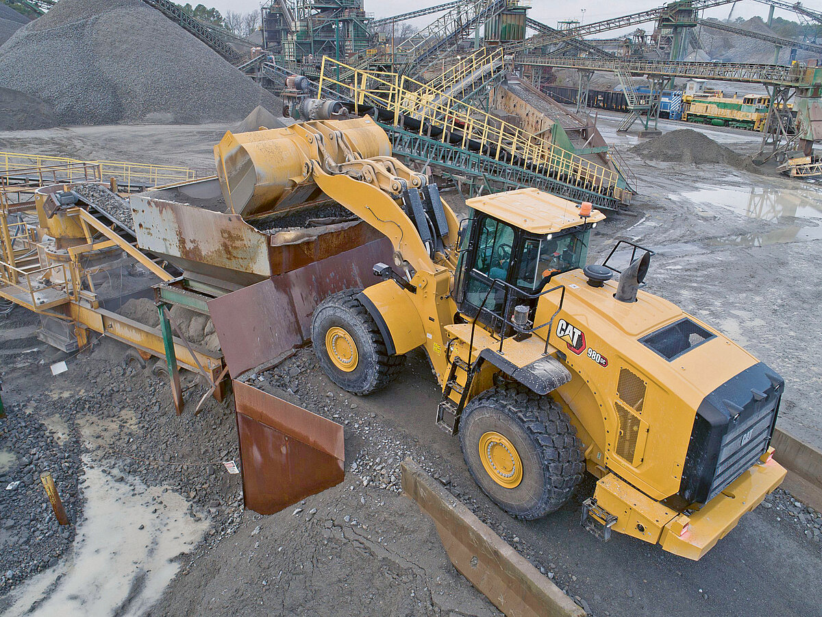 Laut Frank Stadelmann, weltweiter Produktspezialist von Caterpillar, geht die Entwicklung des neuen Radladers mit vielen Erfahrungswerten einher: »Der neue ›980 GC‹ basiert auf einer langen Tradition von überaus zuverlässigen Radladern mit bewährten Komponenten und integrierten Cat-Maschinensystemen. Die einfach verständliche Benutzeroberfläche, intuitive Bedienelemente und eine gute Sicht ermöglichen selbst weniger routinierten Fahrern den komfortablen und effizienten Betrieb. Die neuen Funktionen dieses Modells wie das ›EIMS‹, das ›Engine Idle Management System‹, zur Motordrehzahlregulierung minimieren die Leerlaufdrehzahl und den Kraftstoffverbrauch, um die Betriebskosten möglichst niedrig zu halten.«