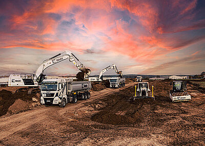 Zu den Aufgaben, die die Minibagger übernehmen, gehören auch leichte Erd- und Tiefbauarbeiten. Sie müssen ein Planum herstellen oder Fundamente ausheben. Daher haben sie neben klassischen Tieflöffeln auch schwenkbare Grabenräumlöffel erhalten. Ein zweiter Zusatzsteuerkreis für solche Werkzeuge ist Bestandteil der Ausrüstung.