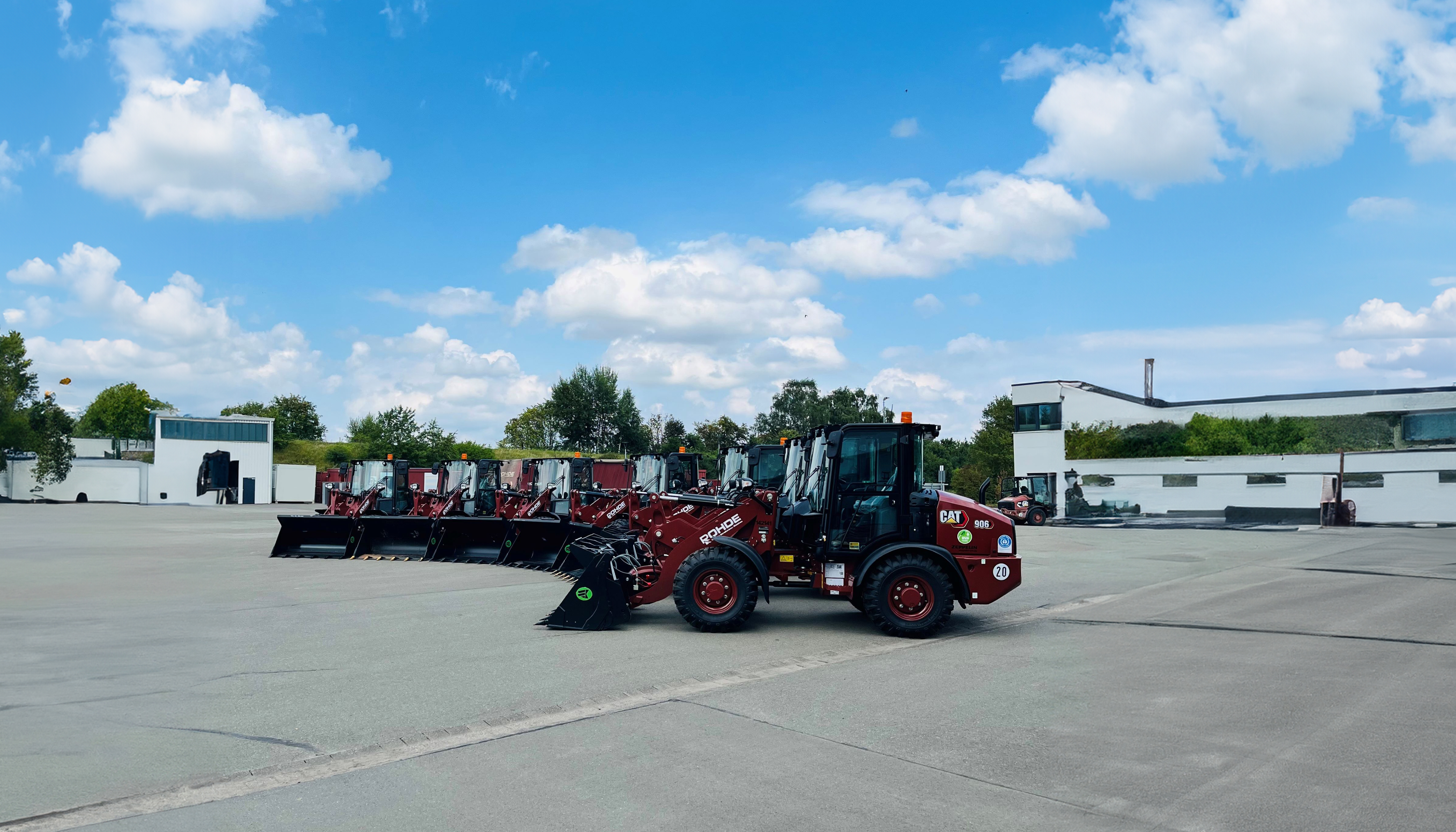 Bewusst wurden die leistungsstarken Allrounder nicht mit zu viel Technik ausgestattet. „Die Radlader sind auf den Baustellen vorwiegend als Transportmaschinen im Einsatz“, erläutert Stefan Brand, Leiter der maschinentechnischen Abteilung bei der Heinrich Rohde Tief- und Straßenbau GmbH. Entsprechend habe man sich für die Basisversion der Radlader, die bereits über eine umfangreiche Serienausstattung verfügt, entschieden. Die sieben Cat 906 sind identisch konfiguriert und mit einer Universalschaufel beziehungsweise einer Palettengabel sowie einer Vorrichtung für einen Kehrbesen ausgestattet und damit bestens gewappnet, um Gräben zu verfüllen, Material zu verfahren, Pflastersteine auf der Baustelle zu transportieren oder Lkw abzuladen. Die Maschinen sind einfach und intuitiv zu bedienen, sodass sich die unterschiedlichen Maschinenführer auf den Cat Radladern zurechtfinden können. Neben der Standsicherheit der Maschine habe die Fahrer vor allem die neue Kabine überzeugt. Punkten kann der Cat 906 hier damit, dass das Armaturenbrett aus dem Sichtfeld verschwunden ist und der Monitor nun seitlich an der A-Säule angebracht ist. Zu der 360-Grad-Sicht tragen auch die großen Außenspiegel bei und sorgen auf engen Baustellen für einen guten Überblick. Damit der Komfort nicht zu kurz kommt, ist zum Beispiel der Joystick in der Armlehne integriert und schwingt mit. Zudem zeichnen sich die soliden Arbeitsmaschinen durch das Ansprechverhalten des hydrostatischen Fahrantriebs, die Leerlaufabschaltung und die direkte Lenkung aus.