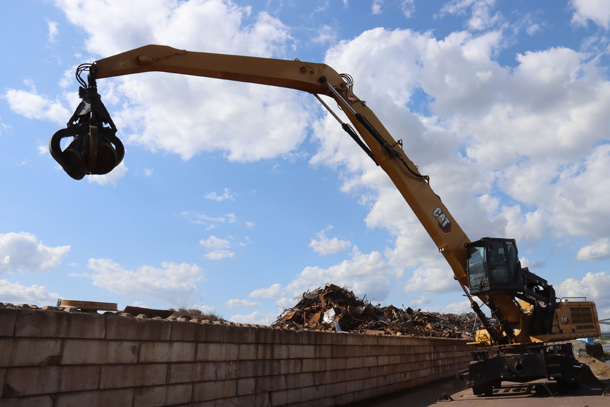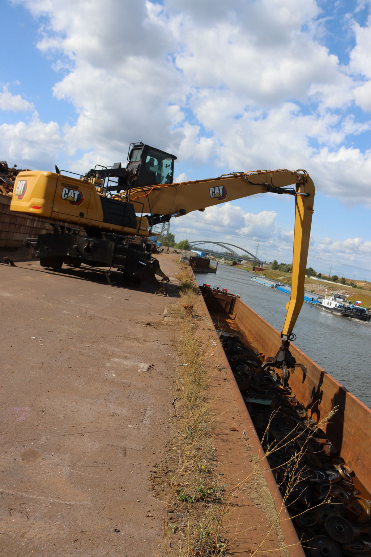 Nicht nur Schiffe werden bei Fegert Recycling be- und entladen, sondern auch Waggons, und da kommen Umschlagbagger wie der Cat MH3050 wieder ins Spiel. Der Entsorgungsspezialist, gegründet kurz nach der Wiedervereinigung, nutzt für die fachgerechte Entsorgung nicht nur den Landweg, sondern durch den Standort im Glindenburger Weg die direkte Anbindung an das Wasserstraßenkreuz Magdeburg. 2005 kamen mit der ESM Schrott- und Metallhandel GmbH weitere Standorte in Schönebeck, Stassfurt und Gatersleben dazu. Seit 2008 gehört die Fegert-Gruppe zu Scholz Recycling. Kernkompetenz, auf die sich der Entsorger spezialisiert hat, ist der Umschlag von Stahlschrott und -legierungen sowie NE-Metallen und Metallen, die aufbereitet werden, um Wertschöpfung zu betreiben. Zu den einzelnen Arbeitsschritten gehört das Trennen, Sortieren, Schneiden, Sieben und Pressen. Ohne diese Bearbeitung können die Materialien nicht ein weiteres Mal in den Wertstoffkreislauf zurückgeführt werden. Dass das aber immer wichtiger wird, belegen die Fakten: Mit Schrottrecycling lassen sich bis zu 80 Prozent Energie und 75 Prozent an CO2 im Vergleich zur Primärproduktion sparen – dafür leistet der Cat MH3050 für Fegert Recycling seinen Beitrag.