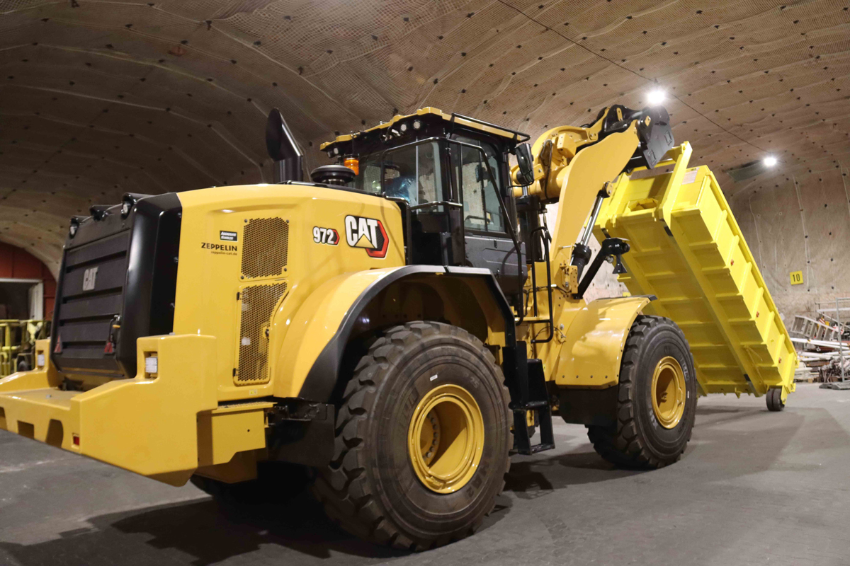 Doch wie soll ein Kamel durchs Nadelöhr passen, geschweige denn ein 2,40 m breiter und 25 t schwerer Cat Radlader 972 durch den Förderschacht mit einer Auffahrrampe von 2,30 m Breite und per Förderkorb zum Einsatzort unter Tage gelangen, wenn dieser auf maximal 12 t Belastung ausgelegt ist? Die Lösung: Der Cat 972 musste zerlegt, verpackt und gesichert werden. Die Abstimmung übernahm Timm Fründt, Zeppelin Serviceleiter Hamburg. Er zog einen Holzspezialisten hinzu, der eine extra Holzkonstruktion basierend auf CAD-Zeichnungen fertigte. Sie hatte das Customizing-Team zusammen mit Kolli-Listen für das Schwergut Radlader erstellt. Volumen und Gewicht waren die Vorgabe für den Transport. Nicht nur die Größe des Förderschachts ist begrenzt, sondern auch der Tragboden des Förderkorbs darf nicht überlastet werden. Separat wurden beim Cat 972 dann Vorderwagen, Hinterwagen, Hubgerüst plus Schaufel, Räder, Achsen per Förderkorb nach unten gebracht – im Werkstattbereich erfolgte dann der Zusammenbau durch Zeppelin Monteure der nächstgelegenen Niederlassung Hamburg, die später dann auch Wartungs- und Instandsetzungsarbeiten an den Geräten erbringen.
