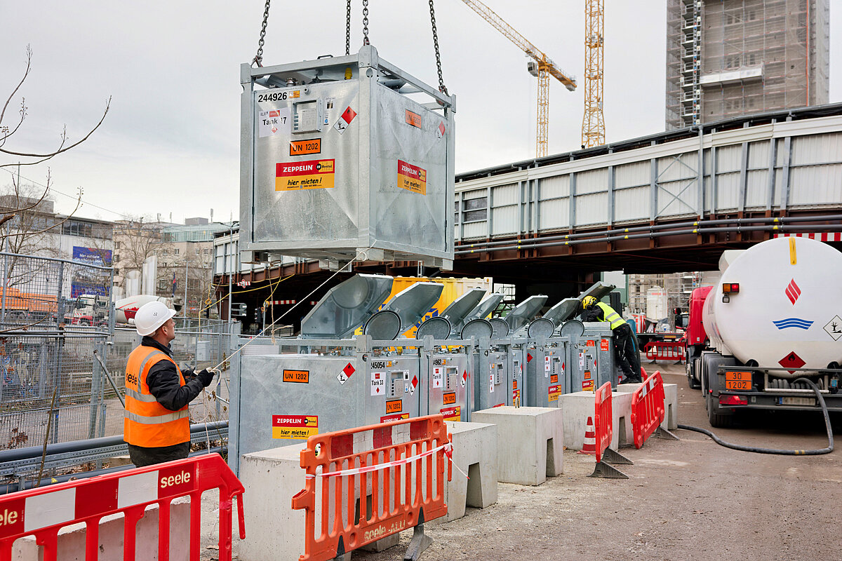 Neben Heizungen und Tanks unterstützt Zeppelin Rental bei Stuttgart 21 mit weiteren Mietlösungen wie Leuchtballonen, Teleskopstaplern, Bauaufzügen sowie Scheren- und Arbeitsbühnen.