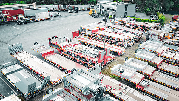 Ob Kauf oder Miete – ein langfristig geplanter Vorrat sowie reservierte Bauplätze bei unseren Lieferanten ermöglichen uns, kurzfristig auf Anfragen zu reagieren. Mit unseren flexiblen, am Bedarf ausgerichteten Mietmodellen bieten wir unseren Kunden zahlreiche Möglichkeiten, auf unseren Fahrzeugbestand zuzugreifen – seien es Sattelanhänger, Satteltieflader, Anhänger oder auch Sattelzugmaschinen oder LKW. Letztere bieten wir auch mit Ladekran an.