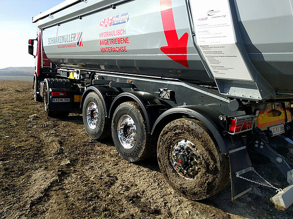 Neben effizienten Onroad-Anwendungen hat SAF-HOLLAND auch spezielle Offroad-Fahrwerke im Sortiment. So bringt zum Beispiel die hydraulisch angetriebene Trailerachse SAF INTRA CD TRAK den Schub direkt dorthin, wo er in schwierigem Gelände benötigt wird – in den Auflieger. Auf Knopfdruck aus dem Fahrerhaus übernimmt der integrierte Zusatzantrieb die volle Achslast und überträgt das gesamte Antriebsmoment. So unterstützt er die Zugmaschine und bildet eine wirtschaftlich attraktive Alternative zu Allrad-angetriebenen Fahrzeugen. Denn das Baufahrzeug ist dank der SAF INTRA CD TRAK auch beim Anfahren nach dem Abkippen auf losem Boden und bei Steigungen sicher und zuverlässig unterwegs. Um Erfahrungen rund um die angetriebene Achse auszutauschen, für Anregungen, Informationen und Expertentipps hat SAF-HOLLAND ein Forum unter www.saf-trak.de eingerichtet.