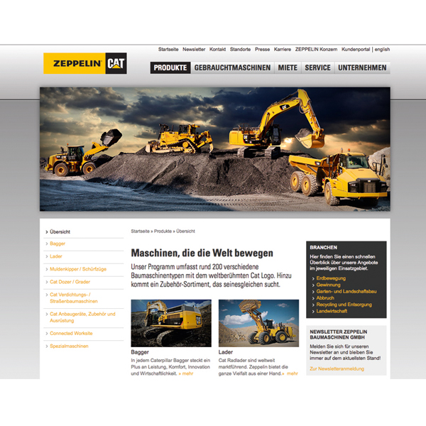 Die Zeppelin Baumaschinen GmbH ist seit 1954 in Deutschland der exklusive Vertriebs- und Servicepartner von Caterpillar Inc., dem weltgrößten Hersteller von Baumaschinen. Bis heute hat sich die Zeppelin Baumaschinen GmbH zur größten Geschäftseinheit von Zeppelin entwickelt und ist Europas führende Vertriebs- und Serviceorganisation der Branche.